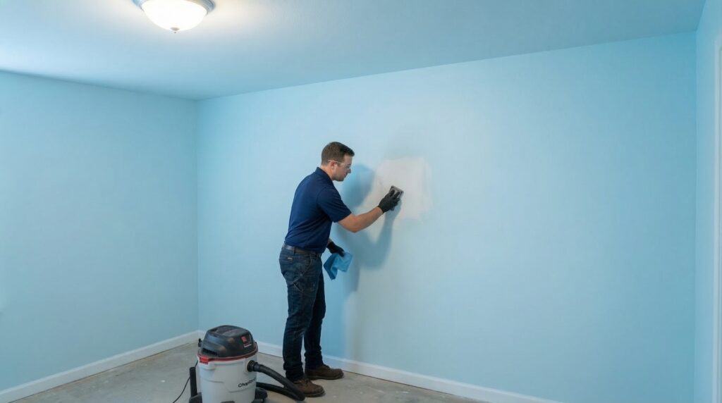 Remove hooks, patch holes, sand down bumps, and wipe the wall clean. Panels adhere best to a flat, dust-free surface. If the wall is glossy, lightly scuff it so the adhesive grips properly.